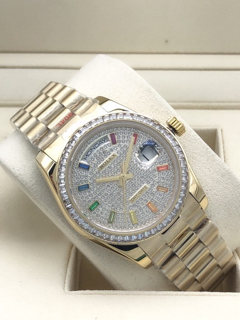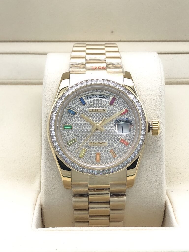 Rolex round diamond bezel with rainbow diamonds all over, size 36mm